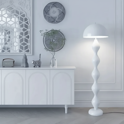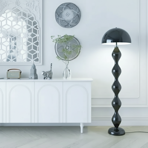 Acest lampadar ondulat atrage privirile prin silueta sa sculpturală și curbele armonioase. Lumina sa blândă răspândește o atmosferă liniștitoare, ideală pentru un living, un dormitor sau un colț de lectură. Designul său îndrăzneț aduce o notă artistică și contemporană oricărui interior modern.